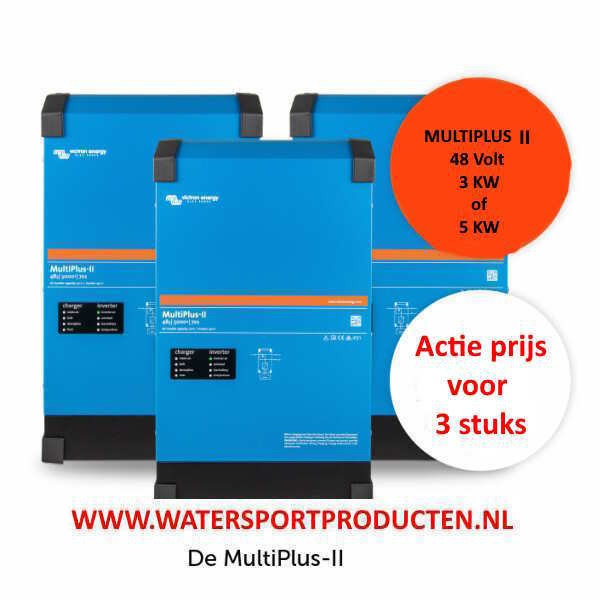 Bij aankoop van 2x MultiPlus-II 48/3000 (PMP482305012) omvormer/lader combinatie ontvang je een extra MultiPlus-II gratis (2+1 gratis).