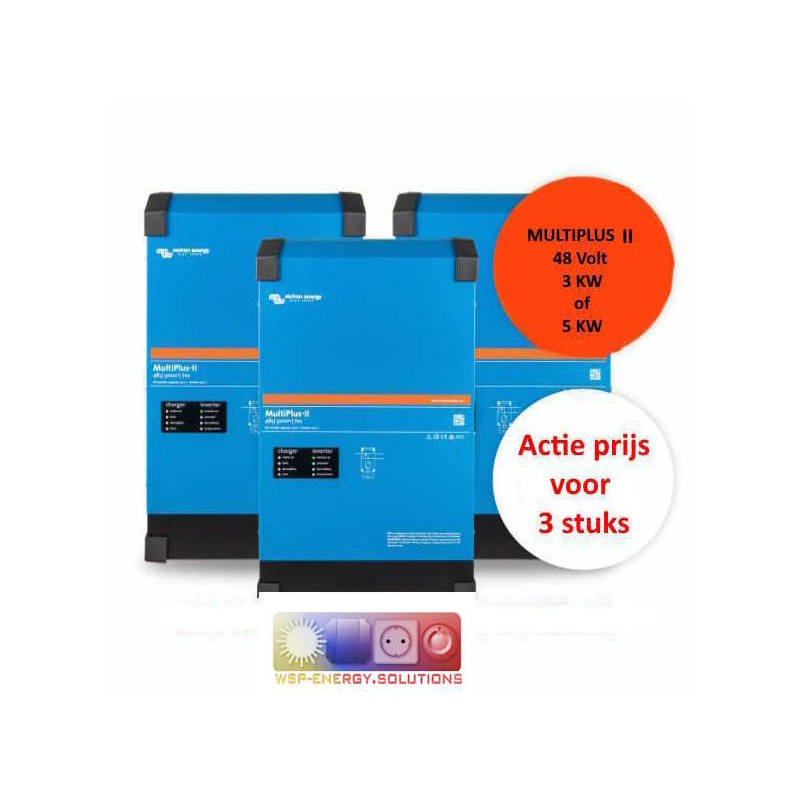 Bij aankoop van 2x MultiPlus-II 48/5000(PMP482505012) omvormer/lader combinatie ontvang je een extra MultiPlus-II gratis (2+1 gratis).
